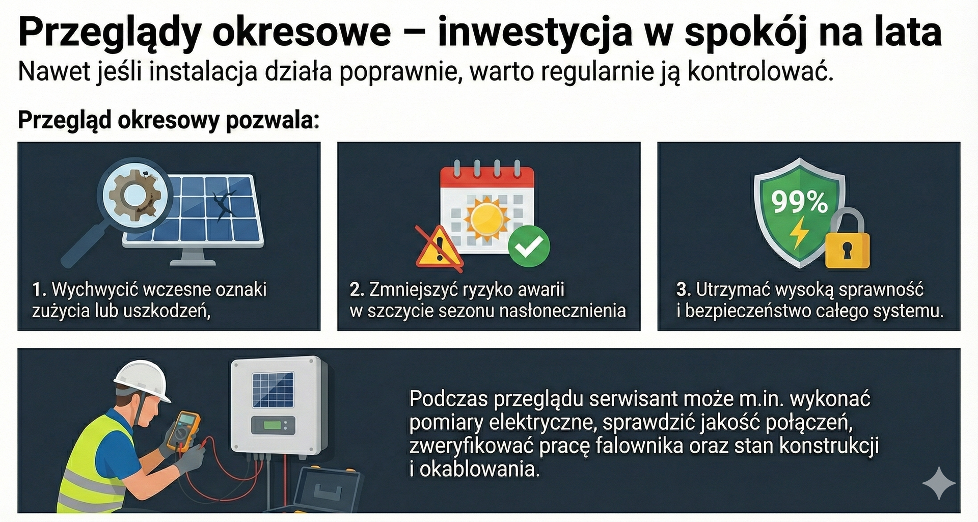 - przeglądy okresowe instalacji fotowoltaicznych,
